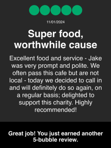 What makes us different is that we are a training café, which means we put every penny you spend with us into helping young adults with learning disabilities make the most of their lives.